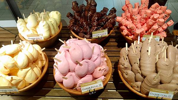 他們家把麵包排列得很整齊,裝飾得很漂亮讓人很想買。