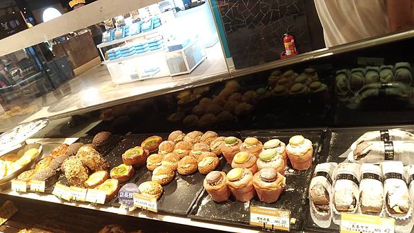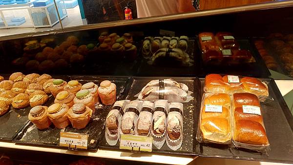 環境上人潮眾多開放式的麵包擺設很吸引人目光。